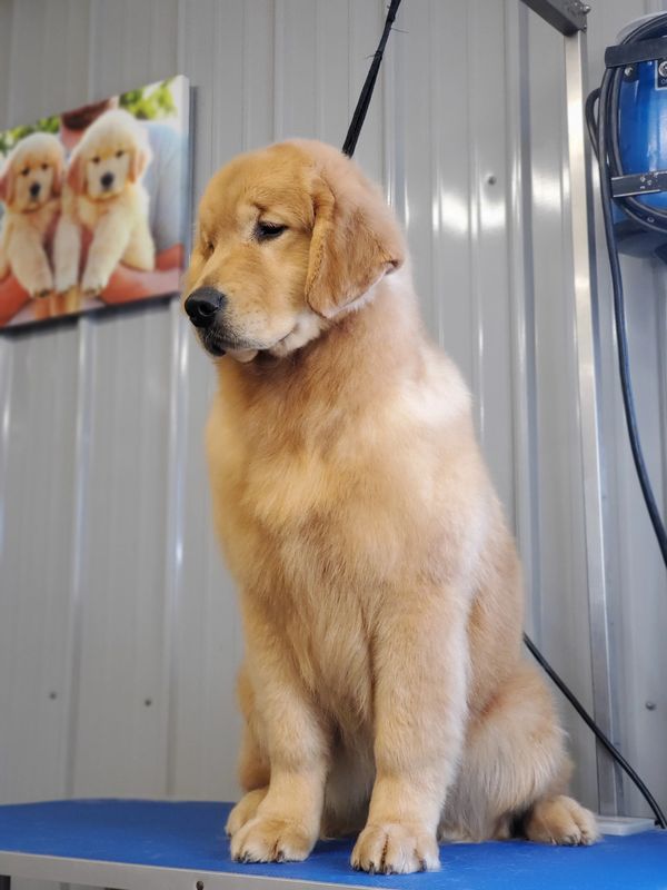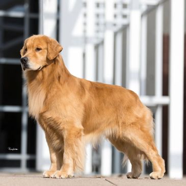 River is a Jake x Claire daughter. Her sire Jake is an AKC Grand Champion, and was in the top 20 goldens of 2020! Her full sister completed her AKC championship at 14 months old🥳, and is now an AKC Grand Champion.♥️